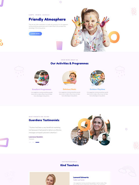 Schools and kindergartens must display all factors affecting the work. This will have a huge impact on children's future. Use Kindergarten theme pack to create such a website.